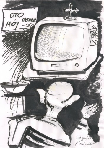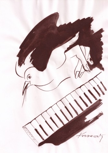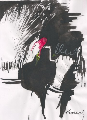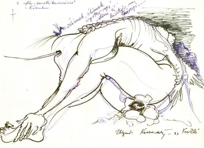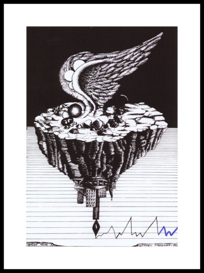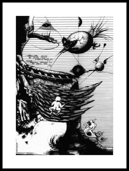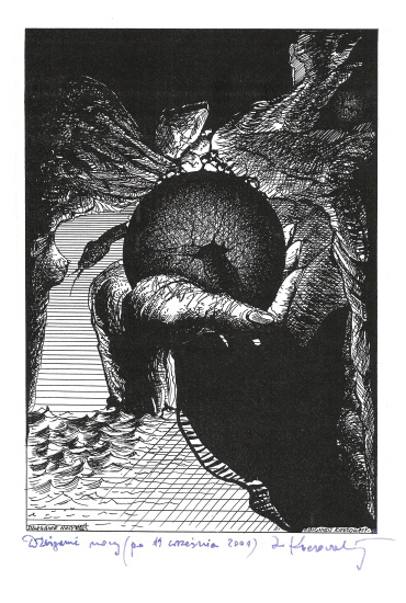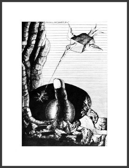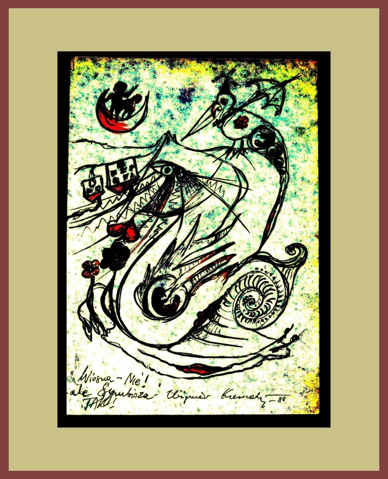 „grafikon czarno-biały” i dalsze rysunki odręczne są tutaj być może groteskami, dopowiedzeniami do wierszy – zwłaszcza tych jeszcze nie napisanych… rysunki są ilustracjami i grą pamięci byłej i tej pamięci, która nadchodzi dużymi krokami z abstrakcji wyłaniając się z mej wrażliwości, która prosi o ich ujawnienie… są one kreskami do całkowitego zapisania białej kartki brystolu, aż do czarnej wielkiej plamy – jak mówi o swojej grafice prof. Andrzej Strumiłło… bywają one ilustracjami do książek dla innych twórców, poetów, a czasem służą czasopismom, z którymi współpracowałem i współpracuję obecnie…
